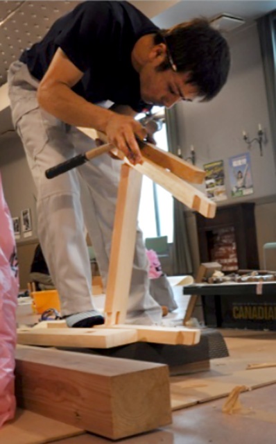 課題は「四方転び踏み台」で、図面作成から現物の製作までを行い、制限時間内で技術・技能を競い合います。大工技能士の2級に相当する課題であり、大工に必要な技術が凝縮されています。寸分のくるいも許されない、非常に難易度の高いものです。