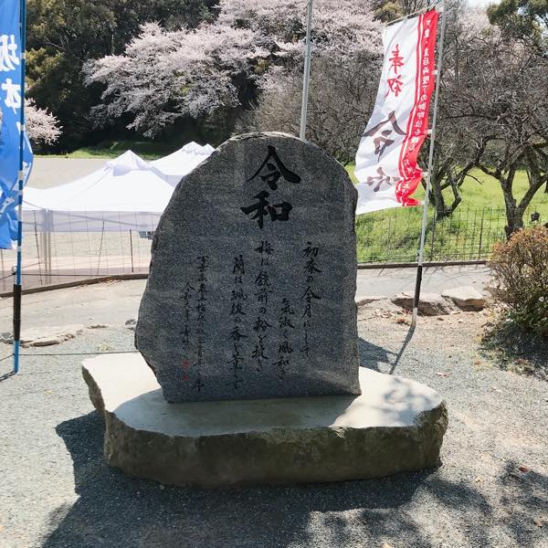 「令和」の由来は、日本最古の歌集である『万葉集』の~梅花の歌三十二首~が出典で、その中の『初春(しょしゅん)の令月(れいげつ)にして、気淑(きよ)く風和(かぜやわら)ぎ、梅は鏡前(きょうぜん)の粉を披(ひら)き、蘭は珮後(はいご)の香(こう)を薫(かお)らす』という序文が引用されました。この~梅の花三十二首~は、奈良時代の初め、当時では珍しかった梅の花をめでて開かれたもので、その開かれた場所のひとつが『坂本八幡宮』とされています。こうした経過から令和初日となった令和元年5月1日には御朱印を求めて1万5千人が行列をなしました。